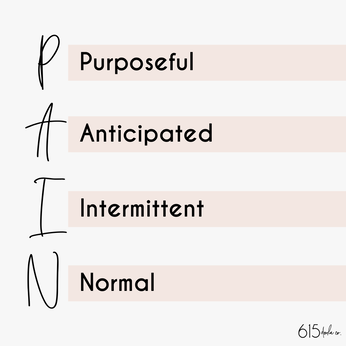 First things first, it all starts with knowledge. Let’s talk about the sensation or pain you might experience in labor. It helps to memorize this acronym: PAIN.