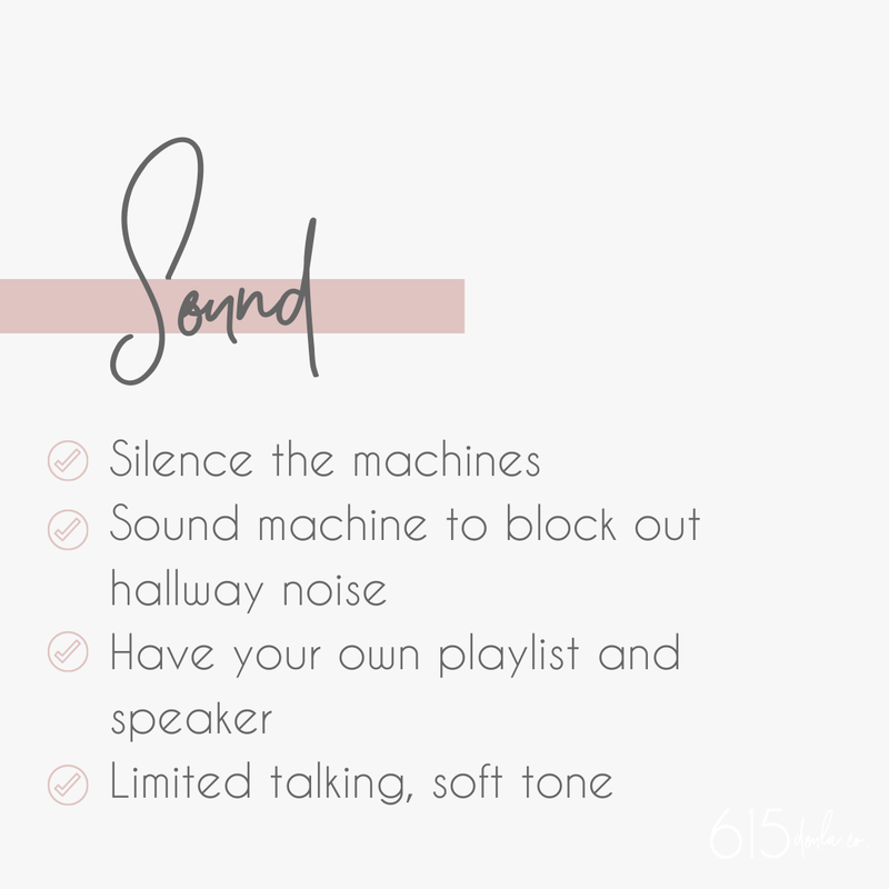 During labor and birth, focus and composure are both very important. You may not think of things like beeping, talking, or a subtle hum of a machine as distracting until you are trying to coax a tiny human out of your body. 🙂